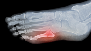 This is the equivalent of a bunion but in the little toe. Patients develop a bony bump that causes pain when rubbing on shoes.
